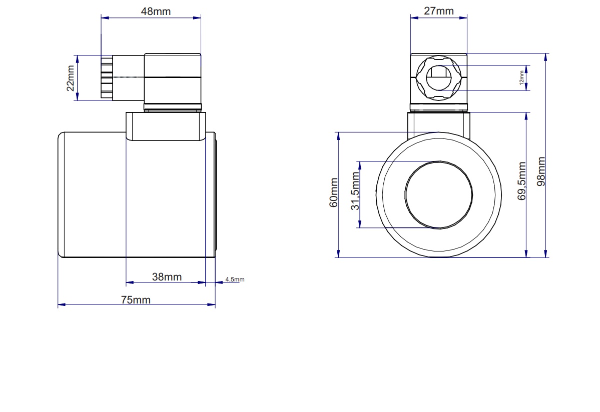 Cewka dzielnika elektrozaworu E12DVS6/2-80L, E12DVS3/2-80L 12V DC 48W ARCHIMEDES