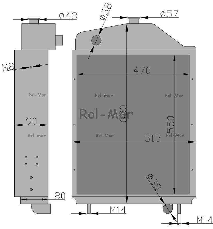 Parametry techniczne: wysokość: 760 mm (od śruby mocującej do korka) szerokość: 510 mm grubość: 90 mm średnica przewodów: ø 39 mm – wykonana w całości z miedzi (oprócz mocowań) – zwiększona zdolność odprowadzania ciepła – odporna na korozję