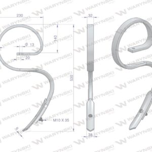 Ząb sprężynowy prosty duński 550mm 32×10 waryński