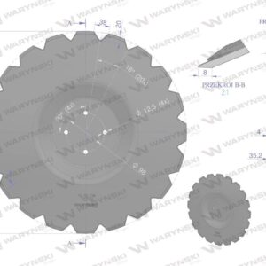 Talerz skrajny prawy z-6 fi 520 mocowanie 5 105mm grubość 8mm horsch stal borowa waryński 00311079