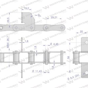 Łańcuch podajnika s45 łapka k1 co 4 ogniwa 5m waryński