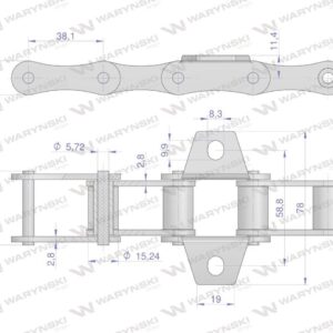 Łańcuch rolkowy 2040 208a r1 1 5 m waryński