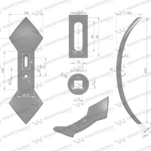 Redlica, dłuto, dziób agregatu zastosowanie horsch terrano, agregatu bezorkowego – najmocniejsza na rynku, wykonana została w całości ze stali borowej, wyposażona w trzy płytki z węglika – poszerzona i pogrubiona w miejscu narażonym na największe zużycie. Stal borowa jest niezwykle wytrzymała i odporna na ścieranie, pochodzi z europejskich hut. Każda, nawet najmniejsza dostawa, posiada dołączony certyfikat potwierdzający skład materiałowy. Stal borowa posiada właściwości szczególnie przydatne w zastosowaniach konstrukcyjnych wymagających dużej wytrzymałości. Produkty waryński to oszczędność kosztów związanych z powolnym ścieraniem i zużyciem części roboczych. W trosce o trwałość naszych produktów oraz zadowolenie klientów proces produkcji lemieszy waryński nie zakłada operacji spawania. Wszystkie rodzaje otworów są wykonane w specjalny sposób minimalizujący naprężenia oraz zmniejszający ryzyko pęknięć. Śruby współpracujące:2 x w-608101240