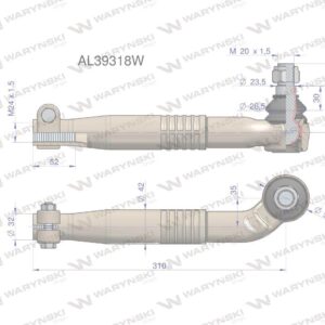 Przegub kierowniczy prawy/lewy 350mm- m28x1,5 f926301100020 waryński
