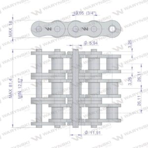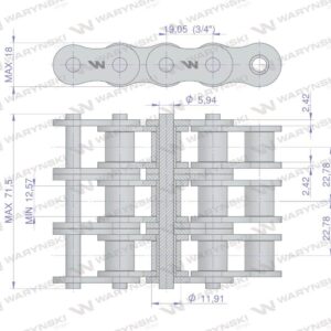 Łańcuch rolkowy wzmocniony przemysłowy 12ah-3 ansi a 60h r3 3/4 5 m waryński