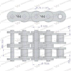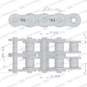 Łańcuch rolkowy wzmocniony 20a-2 ansi a 100 r2 1.1/4 5 m waryński