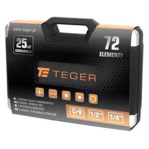 Zestaw profesjonalnych kluczy nasadowych 220 elementów marki teger / komplet kluczy wykonanych ze stopu stali chromowo-wanadowej crv, wytrzymałej na naprężenie statyczne i kinetyczne. Unikalna powłoka na powierzchni znacząco zwiększa komfort pracy oraz pozwala na utrzymanie narzędzi w czystości. Zawartość zestawu klucz nasadowy: