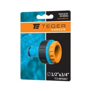 Przyłącze do kranu 1/2″ & 3/4″ / teger / wysokiej jakości uniwersalne przyłącze z gwintem wewnętrzny pasujące do kranu g1/2″, g3/4″. Specjalnie uformowana nakrętka zapewnia idealne połączenie z kranem i bezproblemowy montaż. Żłobiony uchwyt z tworzywa abs pokrytego gumą termoplastyczną (tpr) gwarantuje wygodną obsługę i pozwala szybko i wygodnie zamontować przyłącze do ujęcia wody.