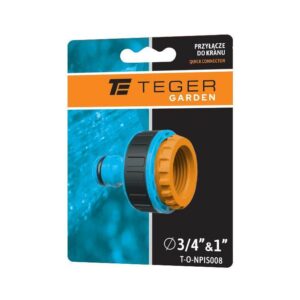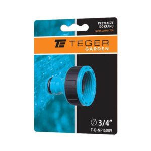 Przyłącze do kranu 3/4″/ teger / wysokiej jakości przyłącze z gwintem wewnętrzny pasujące do kranu g3/4″. Specjalnie uformowana nakrętka zapewnia idealne połączenie z kranem i bezproblemowy montaż. Żłobiony uchwyt z tworzywa abs pokrytego gumą termoplastyczną (tpr) gwarantuje wygodną obsługę i pozwala szybko i wygodnie zamontować przyłącze do ujęcia wody.