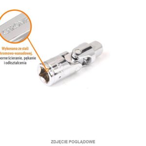 Przegub uniwersalny do nasadek 1/2″ / teger przeznaczony do odkręcania i dokręcania śrub i nakrętek przy użyciu klucza nasadowego pod kątem. Wykonany ze stopu stali chromowo-wanadowej crv, wytrzymałej na naprężenie statyczne i kinetyczne. Wysoka jakość wykonania, trwałość i niezawodność w każdych warunkach, unikalna, polerowana powłoka na powierzchni klucza znacząco zwiększa komfort pracy oraz pozwala na utrzymanie narzędzi w czystości.