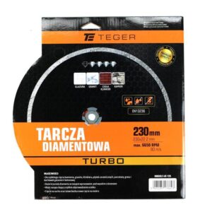 Tarcza diamentowa 230×22.23 mm turbo do szybkiego cięcia kamienia, granitu, klinkieru, płytek ceramicznych, porcelany, gresu, dachówek galanterii betonowej teger
