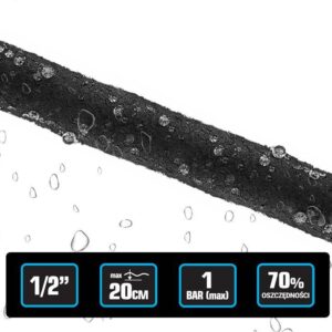 Wąż ogrodowy – kroplujący fi 1/2″, 20m / teger / szczególnie skuteczny przy niskim ciśnieniu wody, umożliwia wyjątkowo oszczędne i precyzyjne nawadnianie roślin na małych i dużych obszarach, co w efekcie powiększa uzyskane plony. Zaletą węża jest równomierne przepuszczanie wody na całej jego długości w postaci dużych kropli. Pozwala znacząco obniżyć koszty nawadniania upraw. Podłączenie zasilania wody odbywa się poprzez standardowe szybkozłącze, możliwe jest również łączenie elementów w dowolny sposób – idealny do upraw warzywnych, kwiatowych i owocowych. Wąż może być używany na powierzchni lub 20 cm pod powierzchnią gruntu.