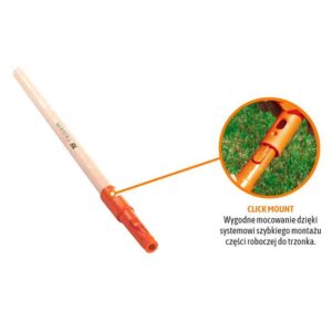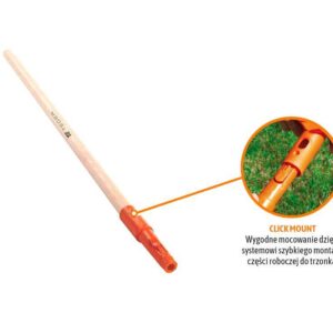 Trzonek drewniany 150cm (mocowanie click) / teger wykonany z wysokiej jakości drewna bukowego odpornego na złamania. Odporny na wilgoć, słońce i inne niekorzystne warunki. Wytrzymały, lekki. System click z wymiennymi głowicami pozwala na wydajną pracę i ułatwia utrzymanie porządku wśród narzędzi ogrodniczych. Szeroki wachlarz wymiennych głowic pozwala dobrać odpowiednie narzędzie do danej czynności.
