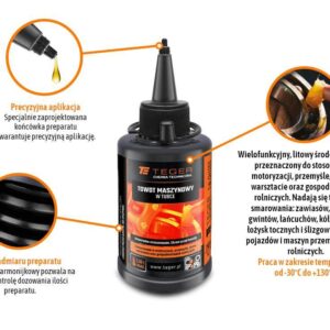 Towot maszynowy w tubce 70 ml / teger wielofunkcyjny, litowy środek smarujący przeznaczony do stosowania w motoryzacji, przemyśle, w domu, warsztacie oraz gospodarstwach rolniczych. Nadają się także do smarowania: zawiasów, zamków, gwintów, łańcuchów, kół zębatych, łożysk tocznych i ślizgowych, części pojazdów i maszyn przemysłowych i rolniczych. Tworzy wytrzymały film smarowny odporny na wilgoć, temperaturę i zanieczyszczenia.
