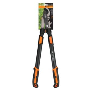 Sekator nożycowy – dwuręczny teleskopowy / teger / to precyzyjne narzędzie do pielęgnacji ogrodu. Zastosowanie w nim uchwyty teleskopowe o długości regulowanej między 66–81 cm umożliwiają cięcie na różnych wysokościach co sprawia, że cięcie jest bardziej efektywne dając większą siłę cięcia. Ostrze ze stali węglowej umożliwia cięcie każdych gałęzi w tym suchych grubych i twardych o grubości do 40mm. Wygodna, ergonomiczna rękojeść z miękkimi elementami doskonale leży w dłoni, zapewniając komfortową pracę.