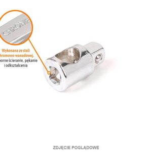 Przegub uniwersalny do nasadek 1/2″ / teger przeznaczony do odkręcania i dokręcania śrub i nakrętek przy użyciu klucza nasadowego pod kątem. Wykonany ze stopu stali chromowo-wanadowej crv, wytrzymałej na naprężenie statyczne i kinetyczne. Wysoka jakość wykonania, trwałość i niezawodność w każdych warunkach, unikalna, polerowana powłoka na powierzchni klucza znacząco zwiększa komfort pracy oraz pozwala na utrzymanie narzędzi w czystości.