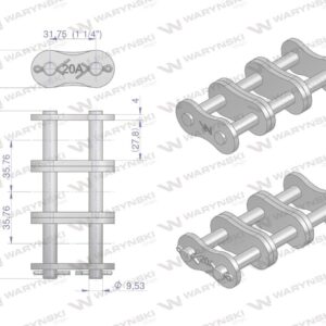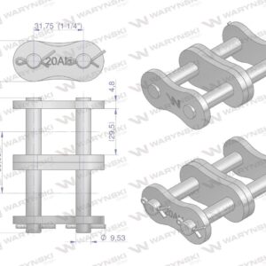 Zamek łańcucha przemysłowego z20ah-2 ansi a 100h r2 1.1/4 waryński 3szt