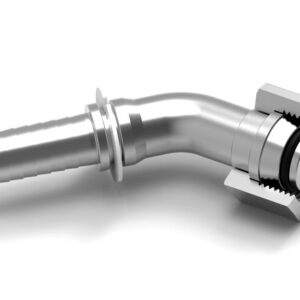 Zakucie hydrauliczne premium waryński serii dkos kątowe 45 stopni (odmiana ciężka) ze stożkiem 24 stopnie, pierścieniem uszczelniającym i z gwintem wewnętrznym metrycznym.