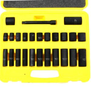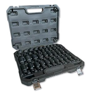 Zestaw nasadek udarowych 1/2 ” metrycznych i calowych sześciokątnych 42 nasadek standadowch i przedłużanych rozmiary 10 11 12 13 14 15 16 17 18 19 21 24 mm i calowe 3/8″, 1/2″, 9/16″, 5/8″, 3/4″, 13/16″, 15/16″, 1″, 1-1/16″ & 1-1/18″ ze wzmocnionej stali crmo waryński