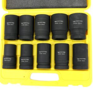 Zestaw nasadek udarowych długich 3/4″ sześciokątnych 10 nasadek rozmiary 24 27 30 32 33 34 36 38 41 46 mm ze stali crmo din3129 waryński