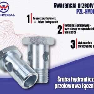 Śruba hydrauliczna oczkowa przelewowa łącznika M18x1,5×48 (pakowana po 2) 8091.030080 typ banjo HYDRAL