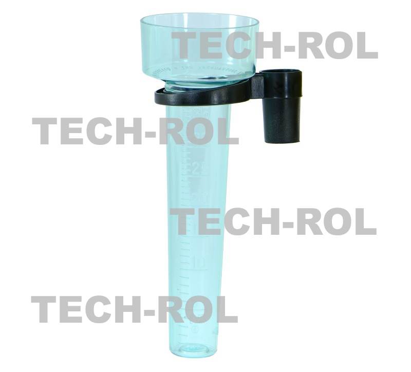 Wyraźna podziałka pomaga w odczycie pomiaru (kreska podziałki 1mm = 1 litr opadów na 1 m2)