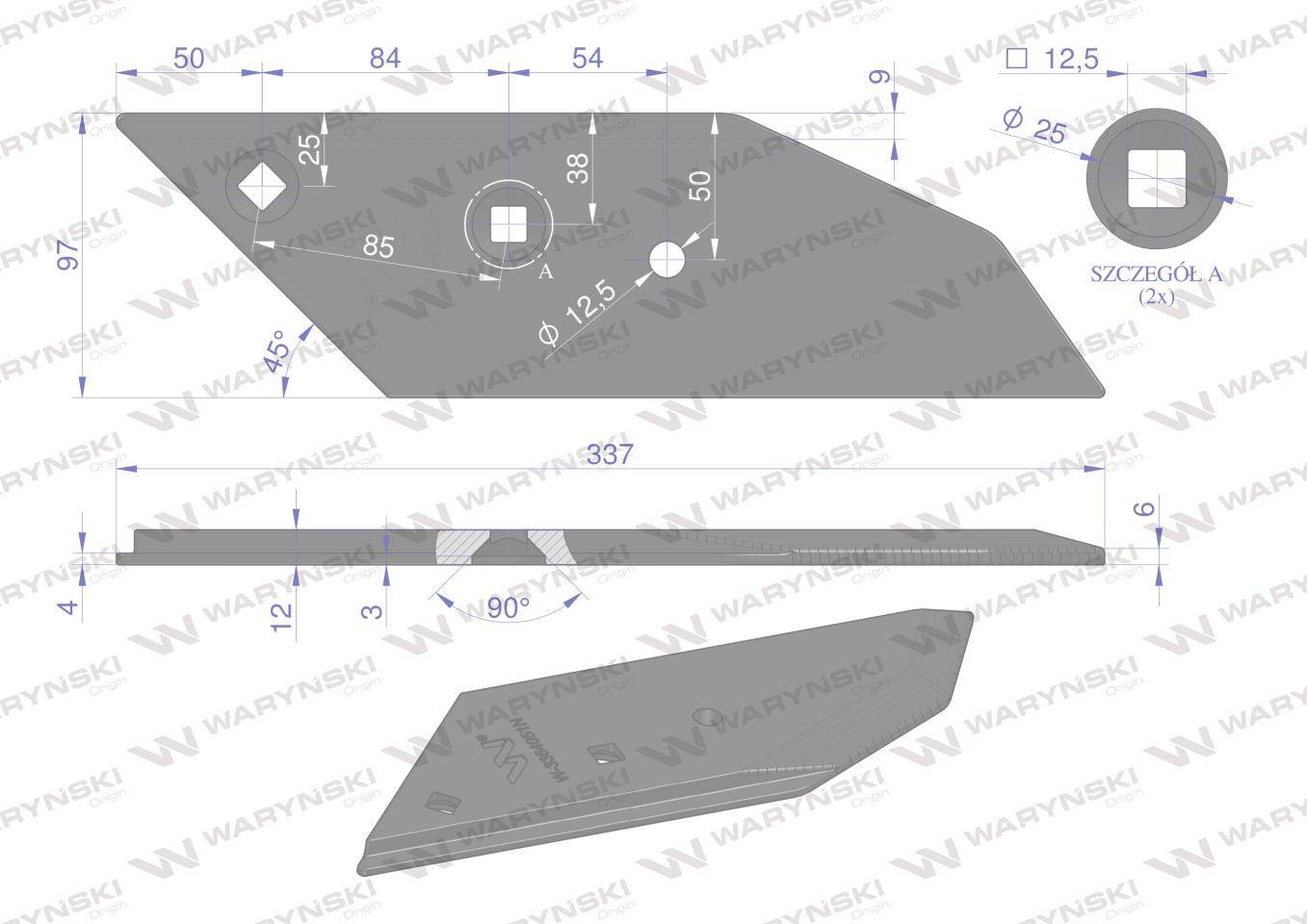 Dłuto nakładka lemiesza lewa zamiennik lemken pług stal borowa napawane waryński