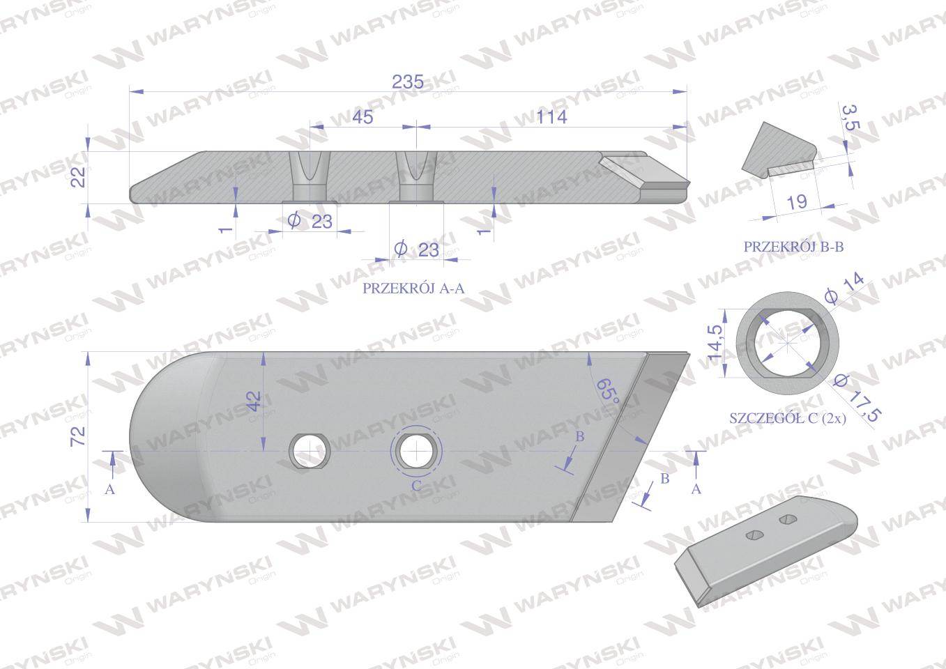 Dłuto nakładka lemiesza prawe vis/17 xl unia pług z węglikiem wolframu waryński maxx