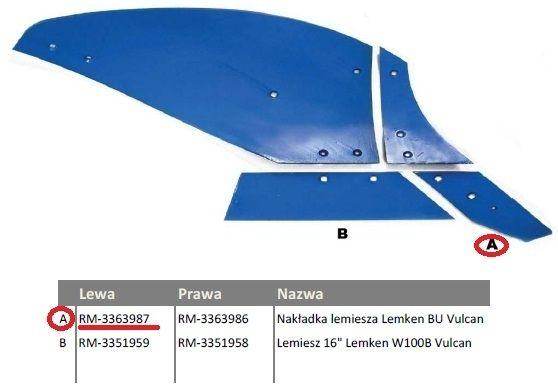 Dłuto, nakładka lemiesza lewa lemken bu vulcan pasuje śruba m12x35pl – 2 szt.