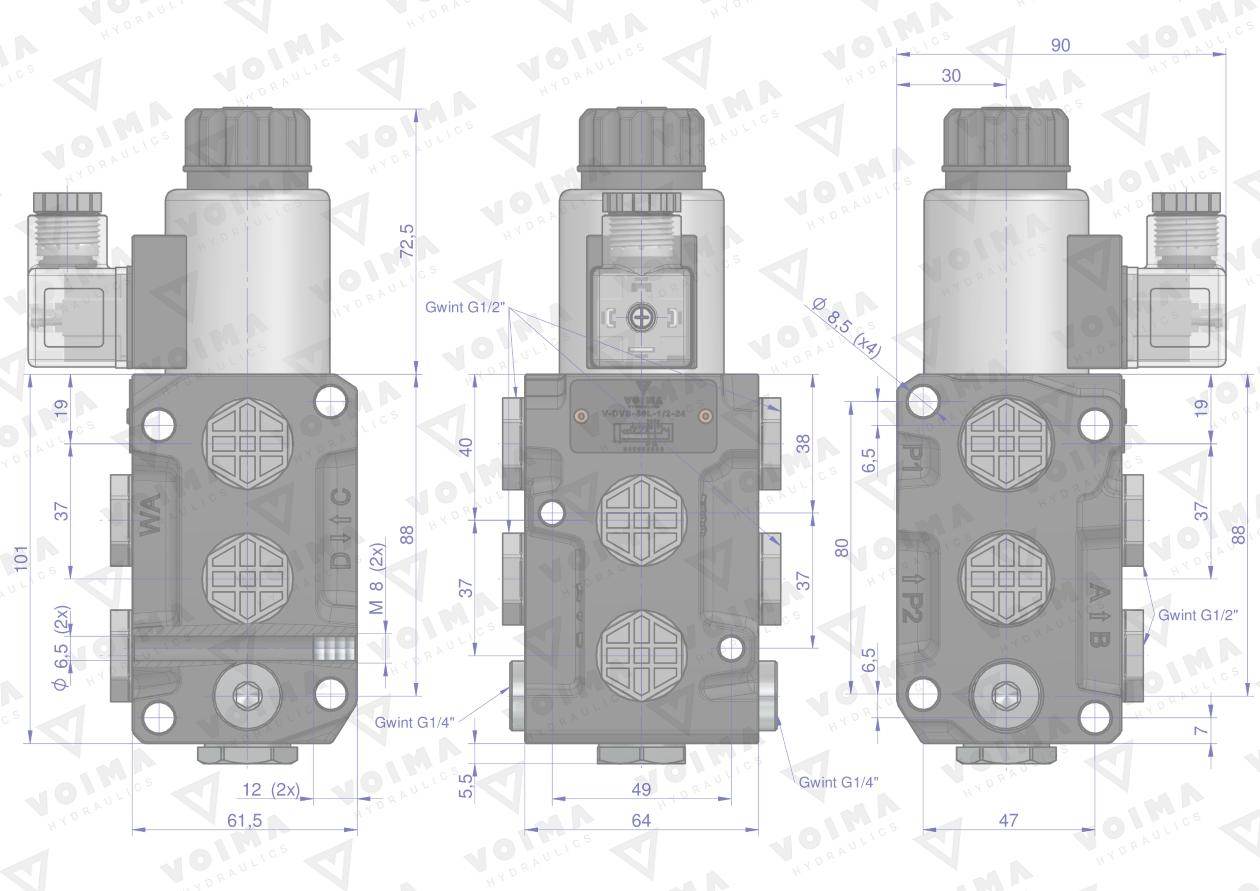 Dzielnik. zawór. elektrozawór kierunkowy elektromagnetyczny kontroli (dvs6/50l) (24v dc) 6/2 g1/2 50l voima