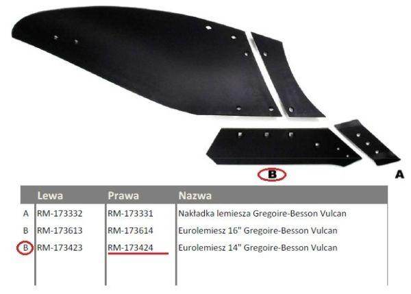 Eurolemiesz prawy 14" gregoire-besson vulcan pasuje śruba m14x35pl 4 szt