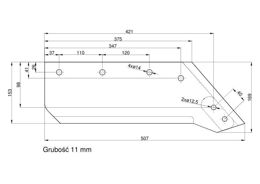 Eurolemiesz prawy 14" kverneland vulcan pasuje śruba m12x34ov2 4 szt