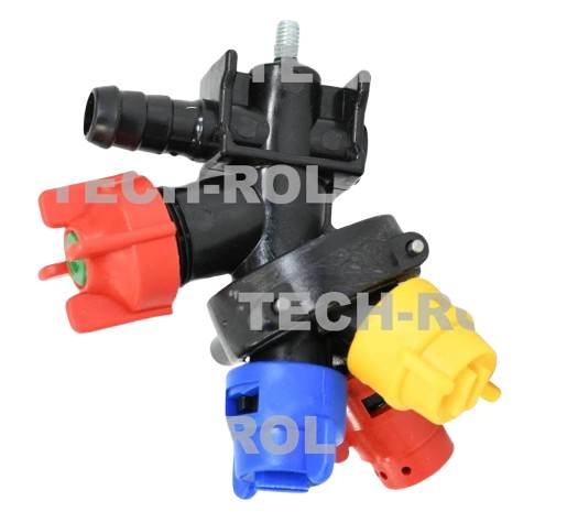 Głowica potrójna obrotowa z RSM; końcowa ze śrubą, typ Biardzki czerwony kołpak RSM, Opryskiwacz; OP-01/GO/K-RSM- B POLIMER Sochaczew