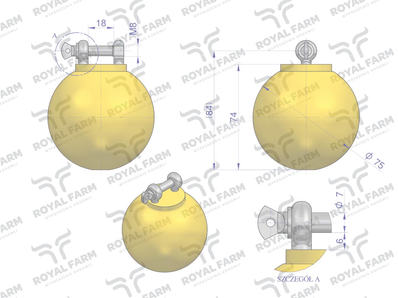 Gyzak dla trzody, kulka, piłka fi75 royal farmpiłka antystresowa do gryzienia o średnicy 75 mm dla tuczników