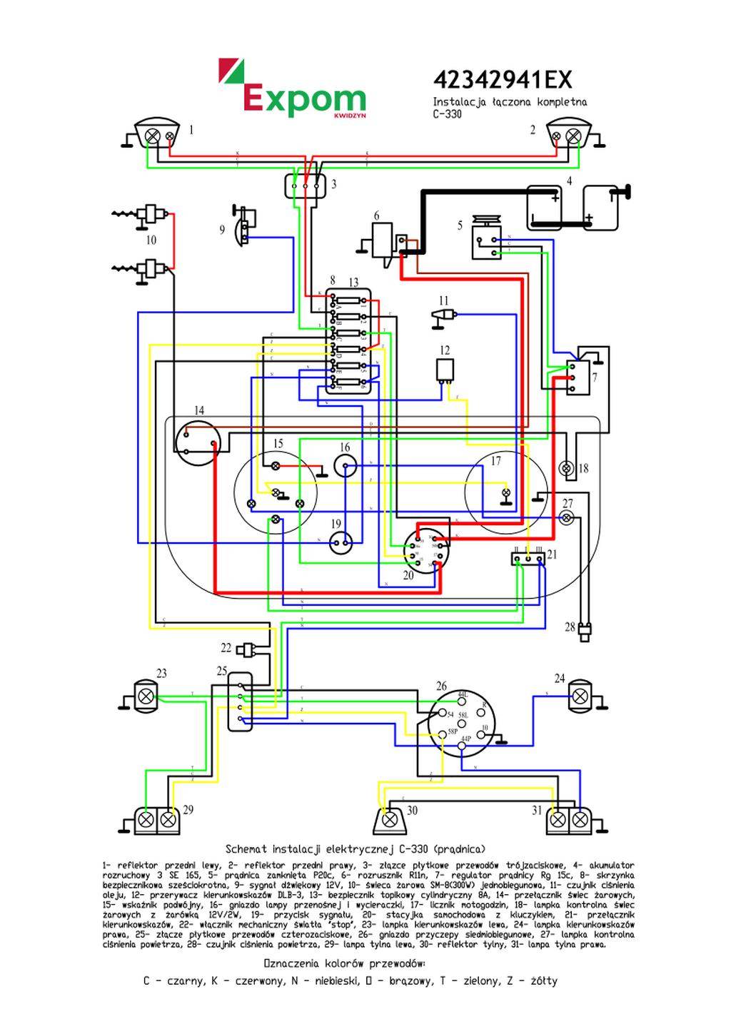 Instalacja kompletna łączona alternator do ciągnika c-330 w marce expom kwidzyn eu jest to produkt wykonany z najlepszych komponentów.w instalacji wykorzystano przewody miedziane o oznaczeniu fly ,posiadają lepsze właściwości plastczne i temperaturowe (-40 do +125c),dzięki czemu są bardziej elastyczne i nie pękają.