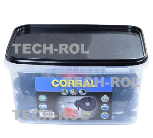 Izolator do drutu i plecionki czarny, z wkrętem do drewna, zestaw 100 sztuk w pudełku, z nakładką do wkręcania; 11-3018 443145/100E CORRAL