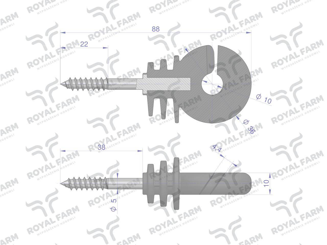 Izolator okrągły z wkrętem fi 5 do drewna po 100 szt royal farm 166844306