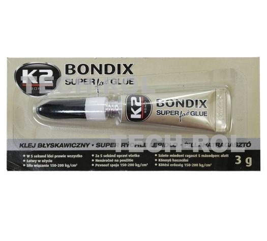 Klej błyskawiczny K2 Super Glue 5 sekund to mocny, jednoskładnikowy, uniwersalny klej cyjanoakrylowy do łączenia elementów z plastiku, metalu, drewna, gumy, skóry, szkła, porcelany czy papieru. Działa ekstremalnie szybko, klejone powierzchnie łączy w 5 do 15 sekund.