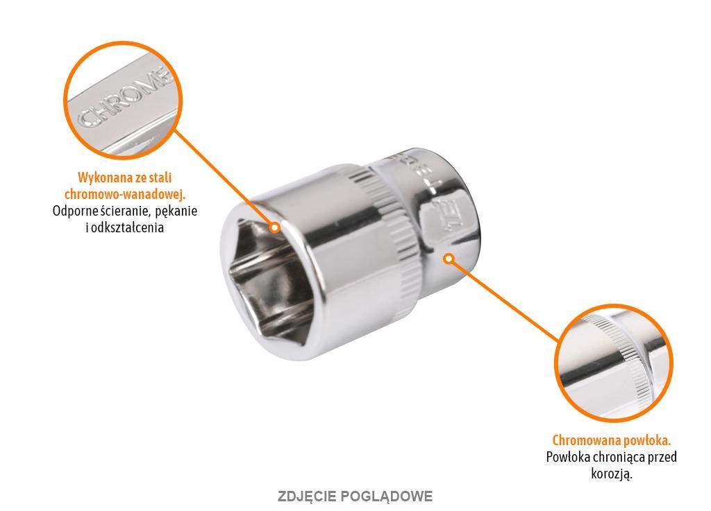 Klucz nasadowy 1/4″ sześciokątny 9 mm / teger nasadka przeznaczona do odkręcania i dokręcania śrub i nakrętek. Wykonana ze stopu stali chromowo-wanadowej crv, wytrzymałej na naprężenie statyczne i kinetyczne. Wysoka jakość wykonania, trwałość i niezawodność w każdych warunkach, unikalna, polerowana powłoka na powierzchni klucza znacząco zwiększa komfort pracy oraz pozwala na utrzymanie narzędzi w czystości. Sześciokątny kształt ułatwia pracę z zapieczonymi śrubami czy nakrętkami.