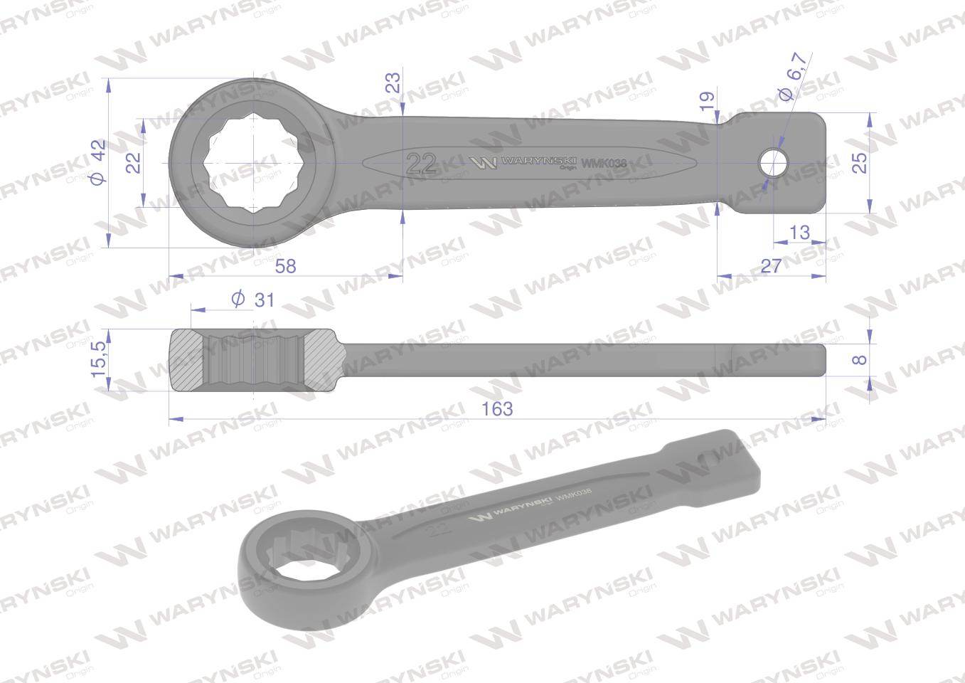 Klucz oczkowy do pobijania 22mm waryński