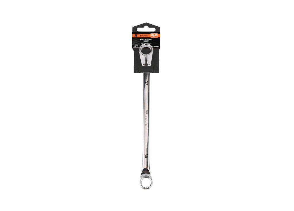 Klucz oczkowy odgięty 30x32mm / teger wykonany ze stopu stali chromowo-wanadowej crv, wytrzymałej na naprężenie statyczne i kinetyczne. Unikalna powłoka na powierzchni znacząco zwiększa komfort pracy oraz pozwala na utrzymanie narzędzi w czystości. Klucz kuty matrycowo, odpory na odkształcenia doskonale wykalibrowany. Dwunastokątna końcówka klucza oczkowego, dodatkowo odgięta ułatwia manewrowanie kluczem.