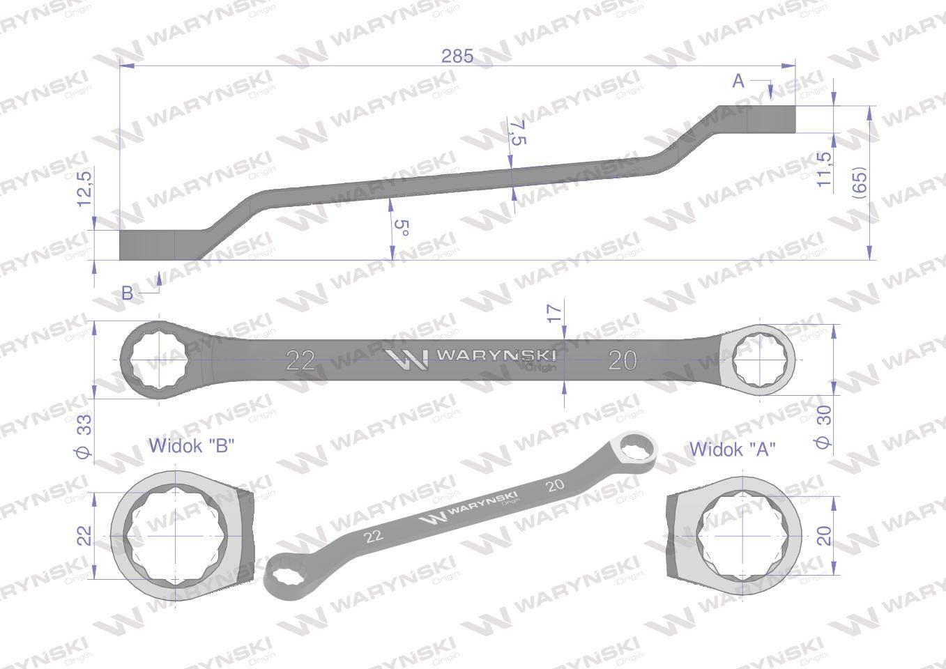 Klucz oczkowy odsadzony 20 x 22 mm. Crv standard asme b107.9 waryński