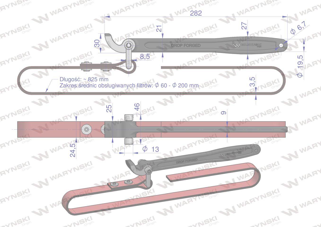Klucz paskowy do filtra oleju średnica max 200 mm (skórz) waryński