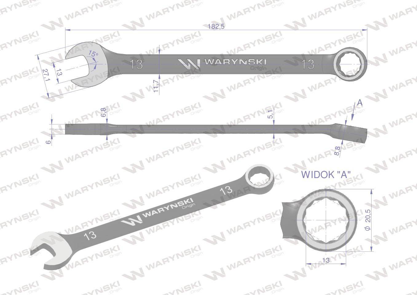 Klucz płasko-oczkowy 13mm crv standard asme b107-2010 waryński