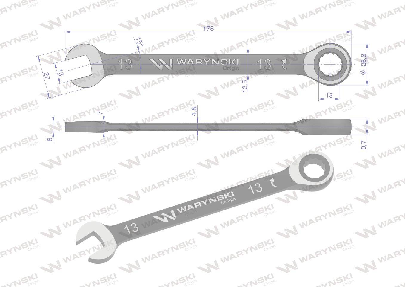 Klucz płasko-oczkowy 13mm z grzechotką 72 zęby standard asme b107-2010 waryński