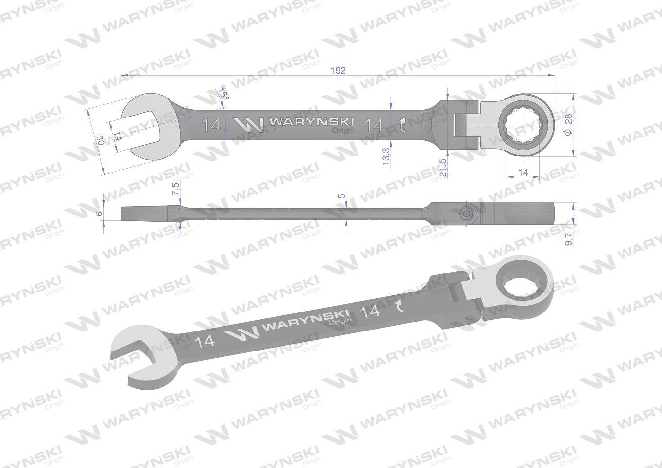 Klucz płasko-oczkowy 14mm z grzechotką 72 zęby i przegubem waryński