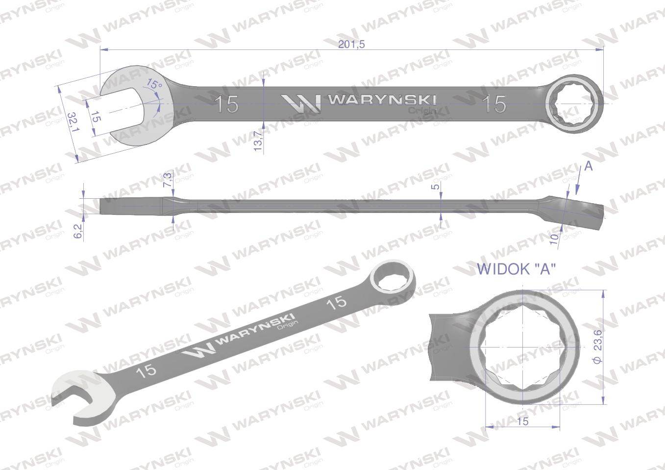 Klucz płasko-oczkowy 15mm crv standard asme b107-2010 waryński