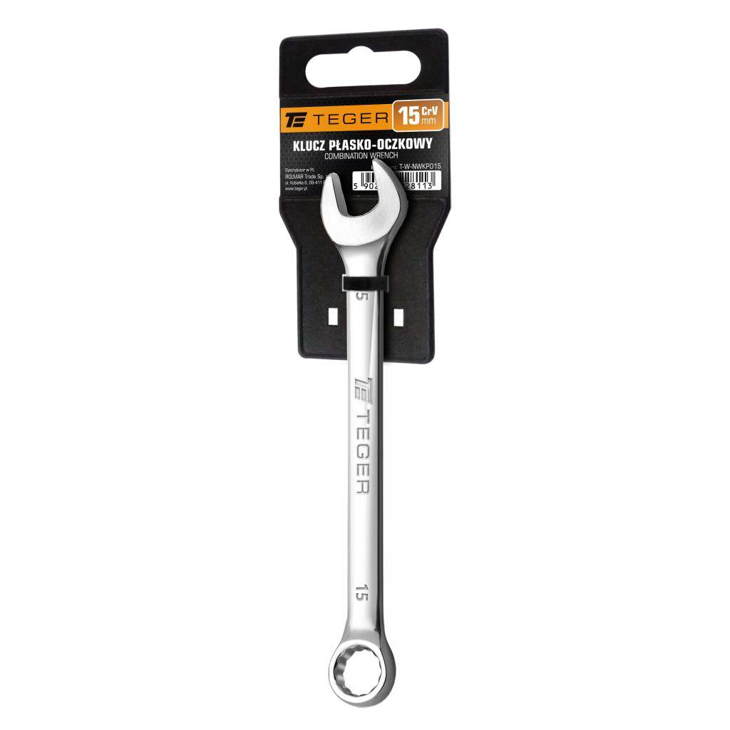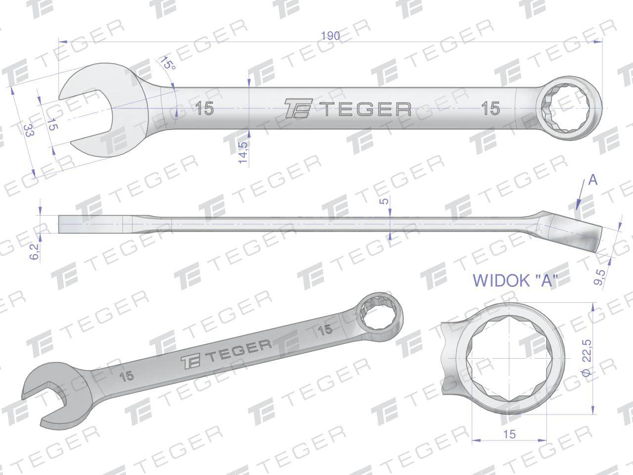 Klucz płasko-oczkowy marki teger / wykonanych ze stopu stali chromowo-wanadowej crv, wytrzymałej na naprężenie statyczne i kinetyczne. Unikalna powłoka na powierzchni znacząco zwiększa komfort pracy oraz pozwala na utrzymanie narzędzi w czystości. Klucz kuty matrycowo, odpory na odkształcenia doskonale wykalibrowany. Dwunastokątna końcówka klucza płasko-oczkowego, dodatkowo wygięta ułatwia manewrowanie kluczem. Właściwości wysoka jakość wykonania (stali chromowo-wanadowej crv), zabezpieczającej przed korozją, kuty matrycowo odporny na odkształcenia, przeznaczony do prac nawet w najcięższych warunkach pod dużym obciążeniem