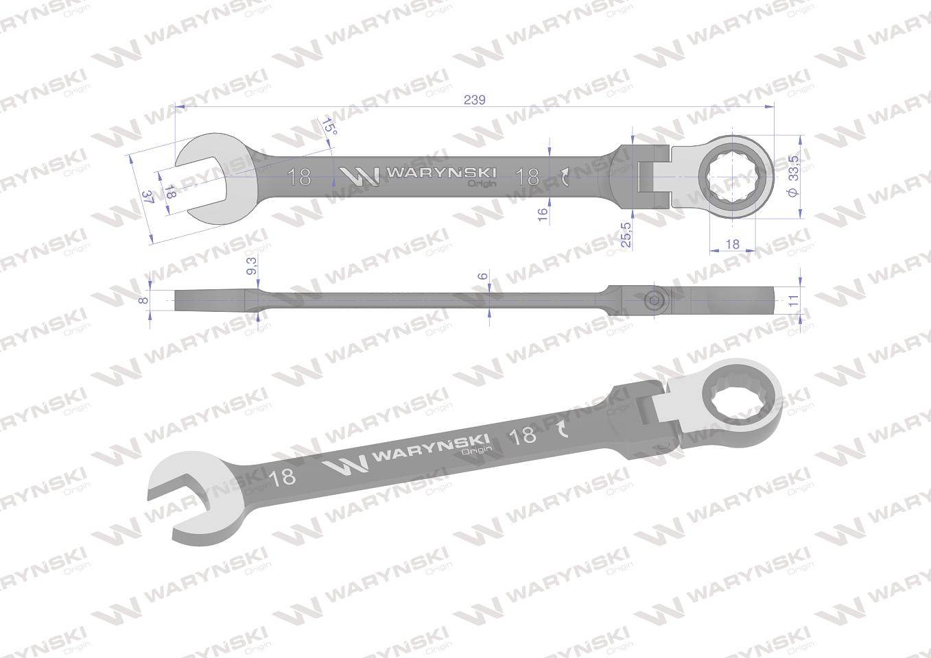 Klucz płasko-oczkowy 18mm z grzechotką 72 zęby i przegubem waryński