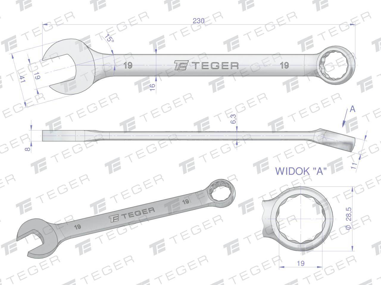 Klucz płasko-oczkowy 19mm teger